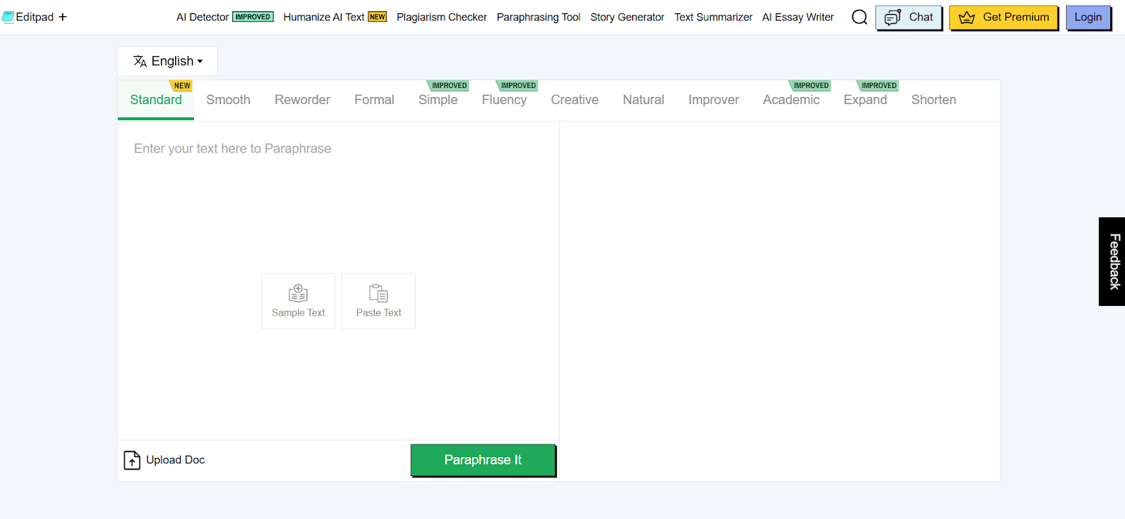 Editpad is an online toolkit offering several useful web-based tools for simplifying writing tasks. Among these, its paraphrasing tool stands out for entrepreneurs because they often need to refine their written communication. It helps rephrase text while keeping the original meaning intact, making the written communication clearer.