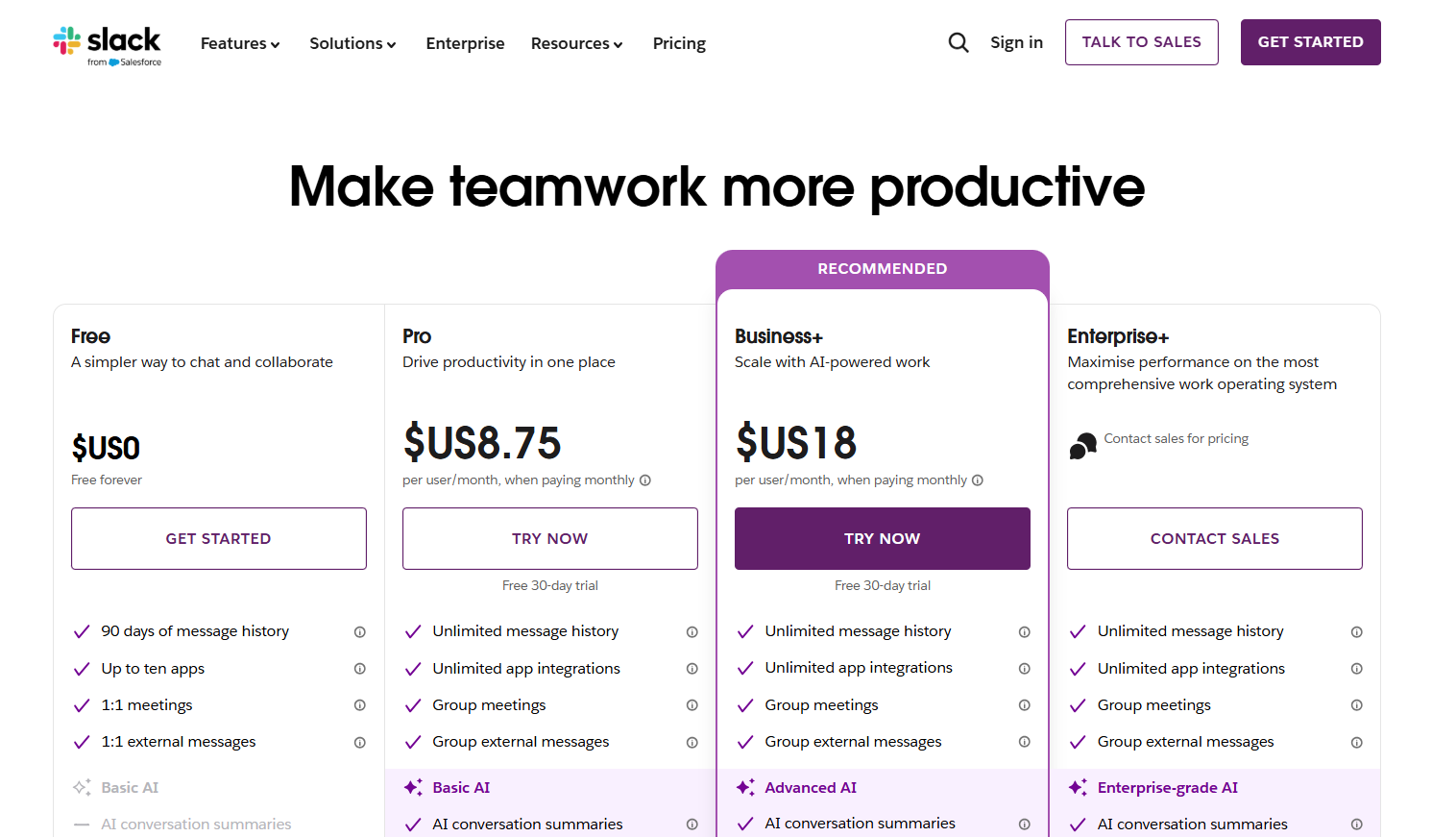 Slack provides basic features for free, while its premium version starts at $8.75 a month.